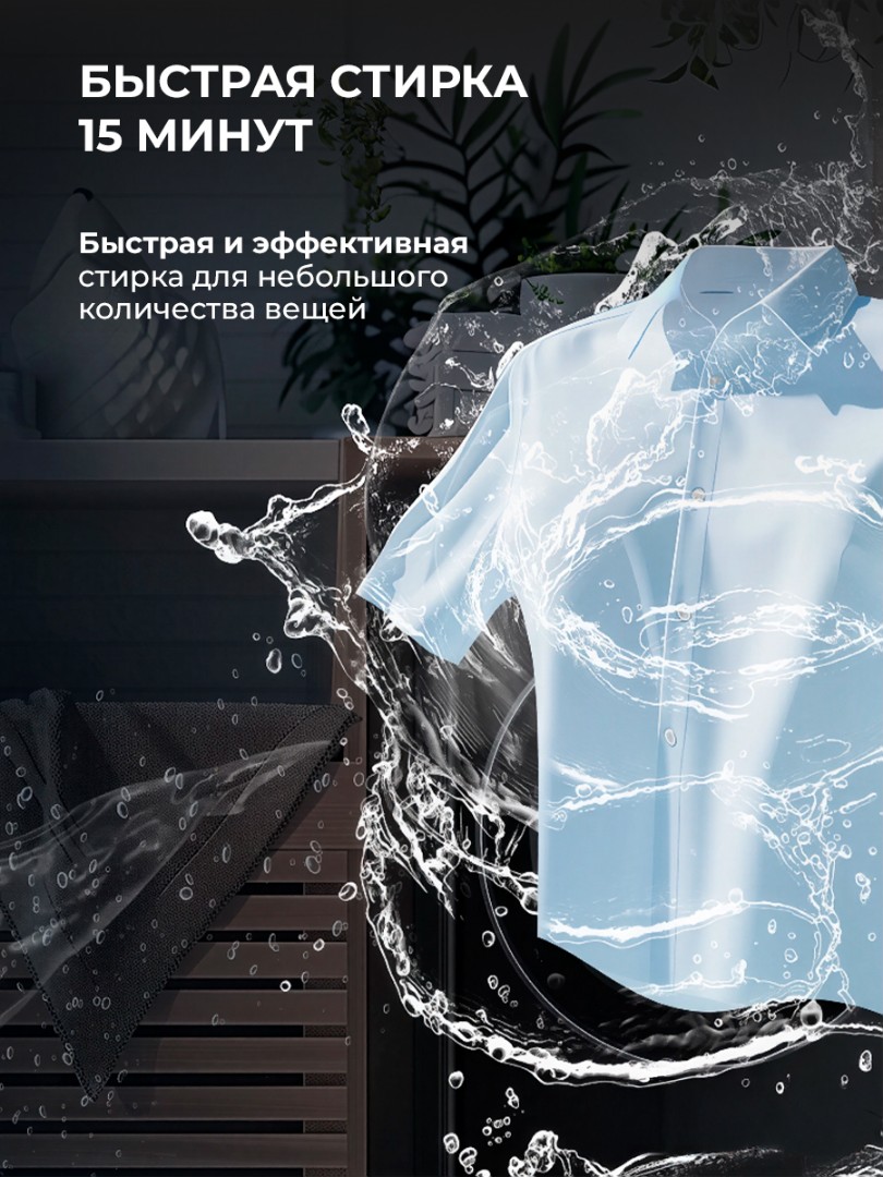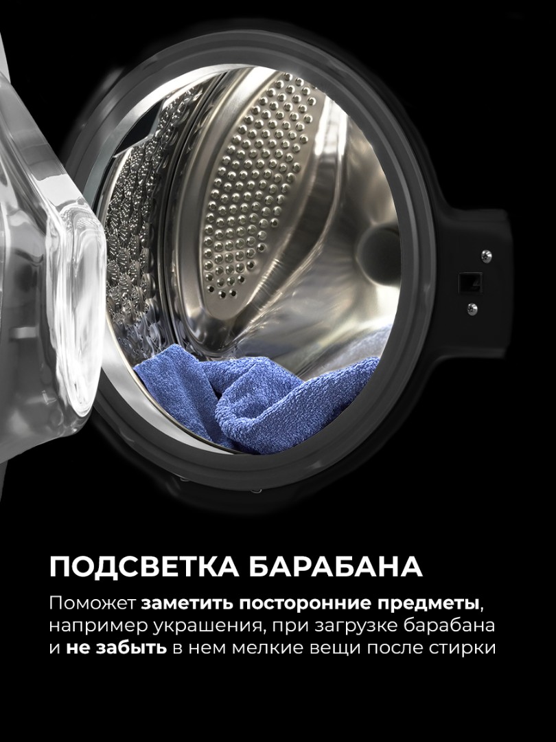 - Вместительный барабан для загрузки от 6 до 8 кг белья в узком корпусе (от 40 до 47 см).