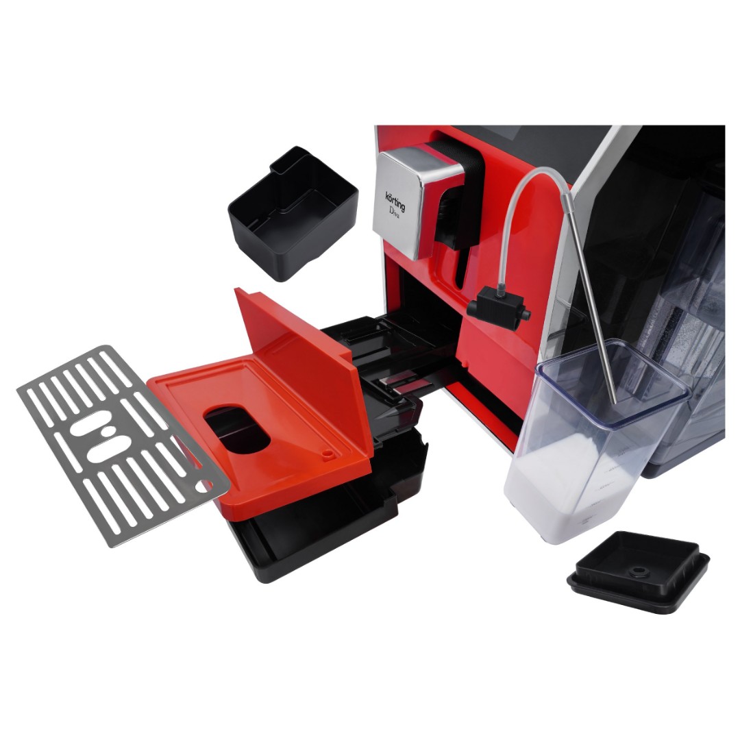 Кофемашина KACM 2005 Diva, выполненная в красном цвете, имеет 35 автопрограмм для приготовления напитков. Кроме того, она предлагает свыше двухсот индивидуальных настроек с возможностью их сохранения. Выбор напитка и настройки, включая подбор объема кофе и молочной пены, осуществляется на цветном сенсорном дисплее. Автоматический капучинатор позволяет готовить напитки с молоком нажатием одной кнопки. Он работает в паре с независимым контейнером для молока обёъемом 500 мл, который можно хранить в холодильнике. Разборная конструкция значительно упрощает обслуживание и продлевает срок службы прибора. Для дополнительного удобства кофемашиной можно управлять как при помощи сенсорного дисплея, так и при помощи дискового джойстика. Регулировка высоты дозатора для чашки также производится вручную, что позволяет готовить напитки в посуде с разными размерами.