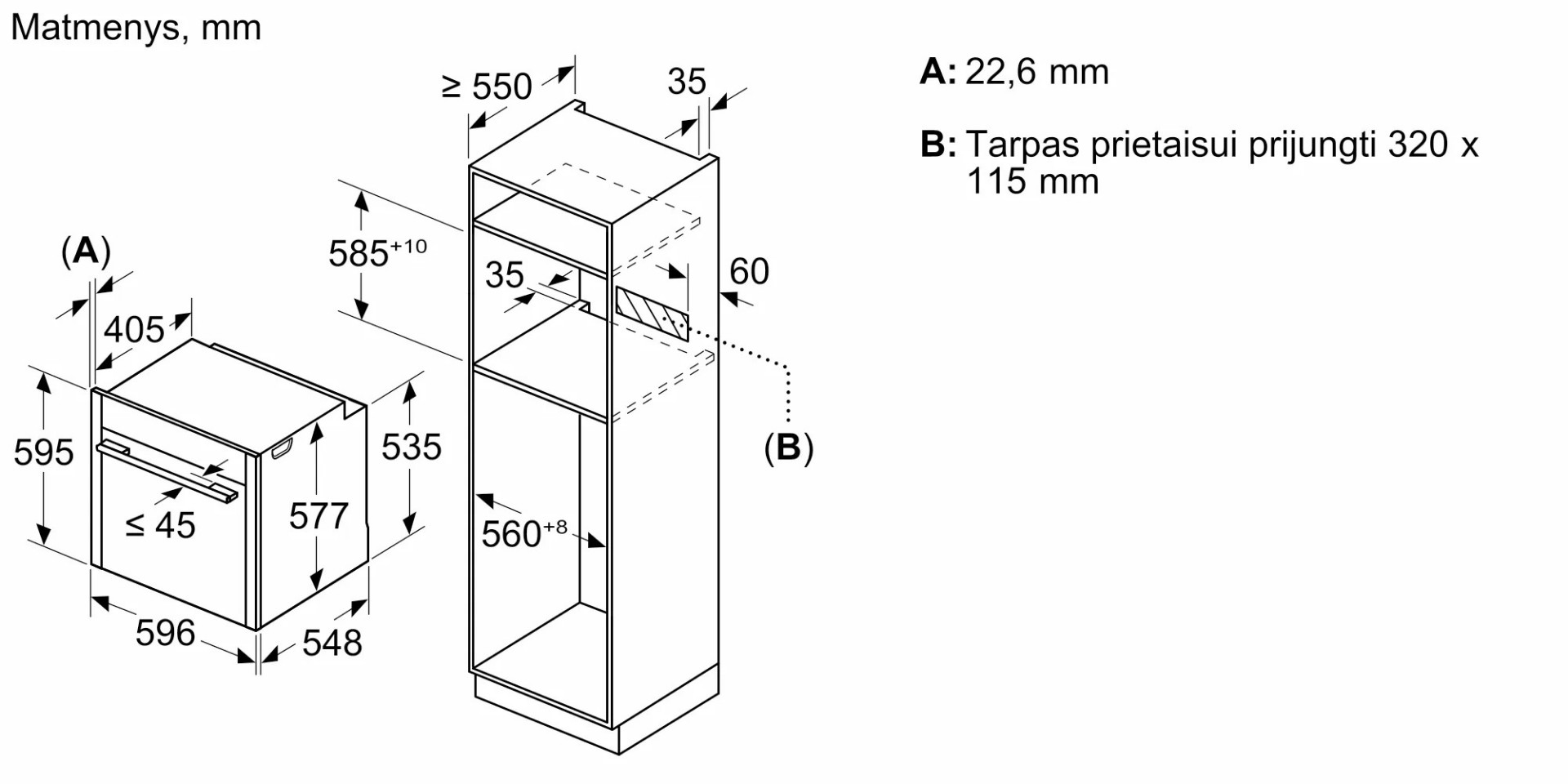 • Размеры ниши для встраивания, см (В х Ш х Г): 58.5-59.5 х 56-56.8 х 55